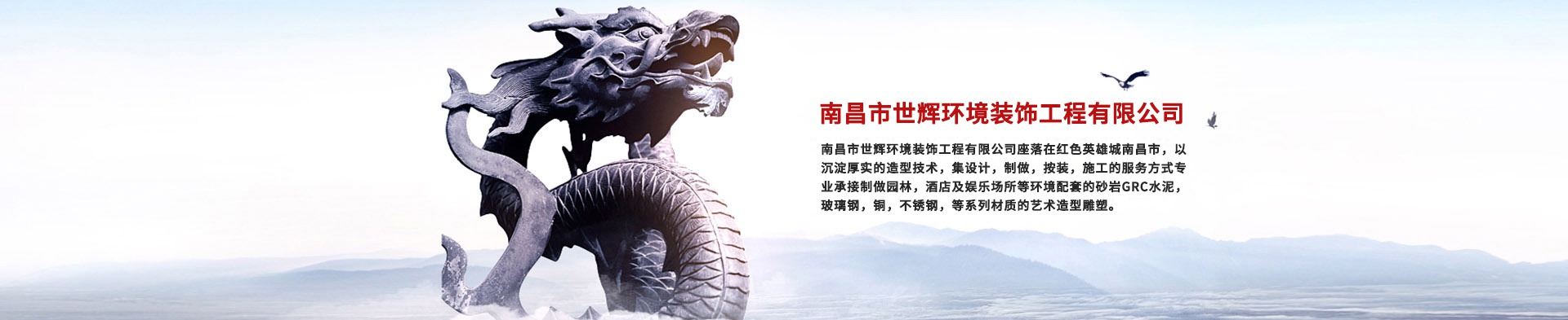 ->>查看南昌市世輝環(huán)境裝飾工程有限公司座落在紅色英雄城南昌市,以沉淀厚實(shí)的造型技術(shù),集設(shè)計(jì),制做,按裝,施工的服務(wù)方式專(zhuān)業(yè)承接制做園林,酒店及娛樂(lè)場(chǎng)所等環(huán)境配套的砂巖GRC水泥,玻璃鋼,銅,不銹鋼,等系列材質(zhì)的藝術(shù)造型雕塑。本企業(yè)是以開(kāi)拓高品位,高質(zhì)量的材料,提升生活......